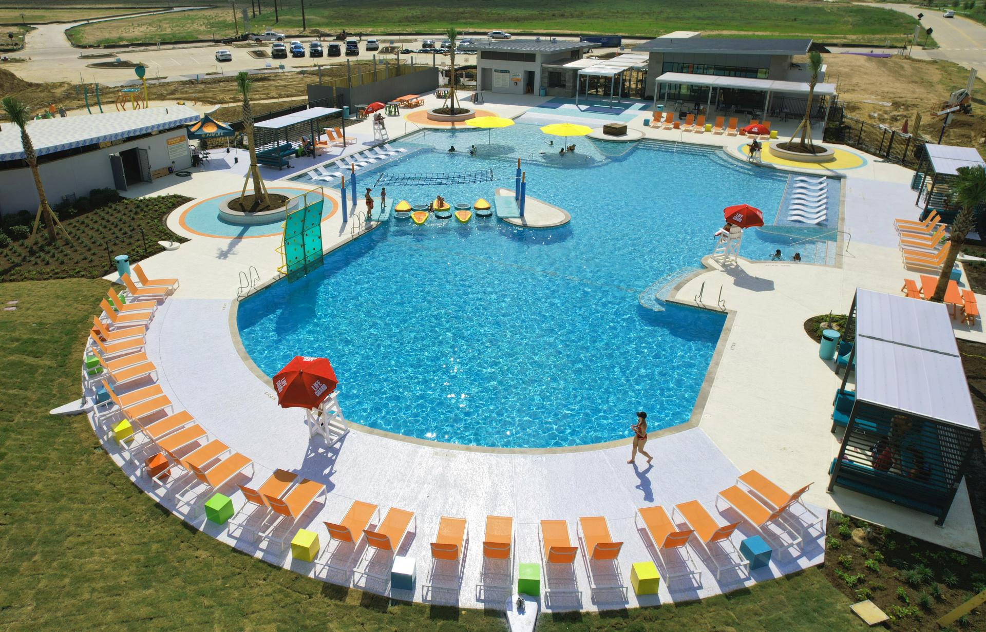 The Joy Hub Recreation Center includes a massive pool, co-working lounge, splash pad and event lawn.